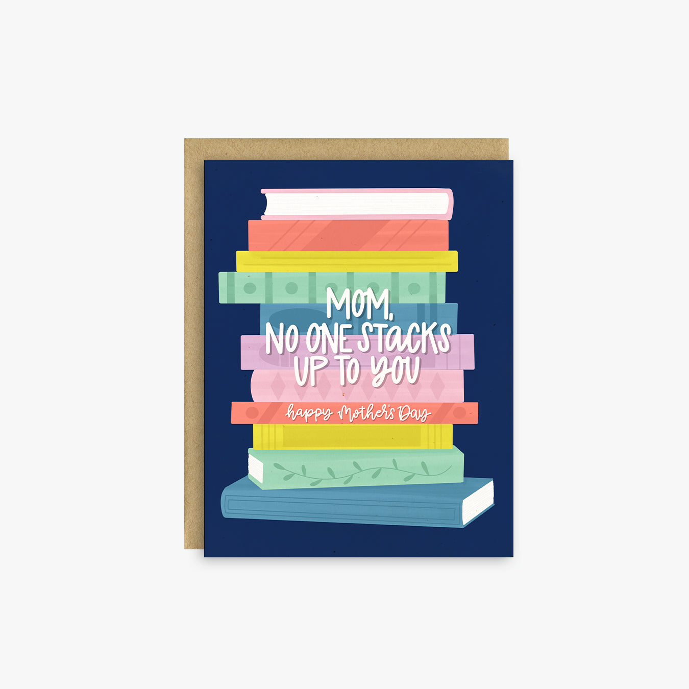Celebrate the incredible woman who stacks up against all odds with our charming A2-sized Mother’s Day card! Featuring a delightful design of colorful spring-themed books stacked high, this card perfectly captures the essence of knowledge, love, and support that only a mom can provide. The witty phrase, "Mom, no one stacks up to you," adds a lighthearted touch, making it the ideal choice for the mom who’s your biggest supporter and best teacher.
