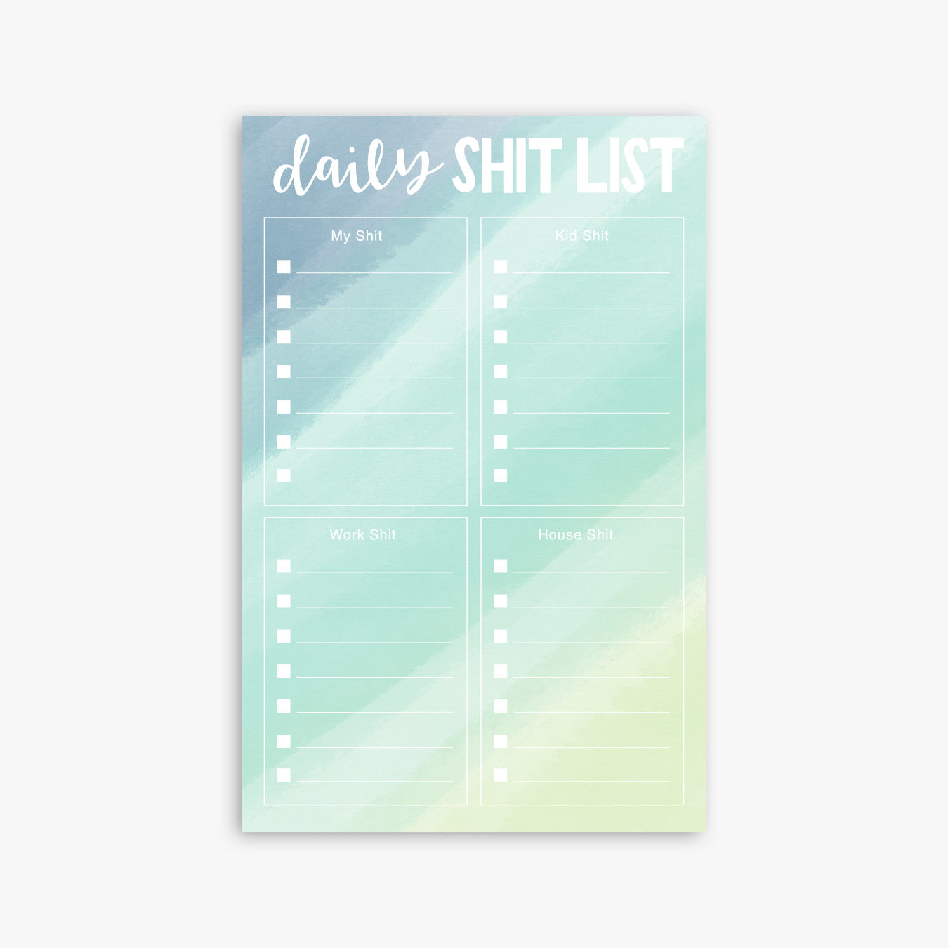 Organize your shit, kid shit, work shit, and house shit for the day with this notepad