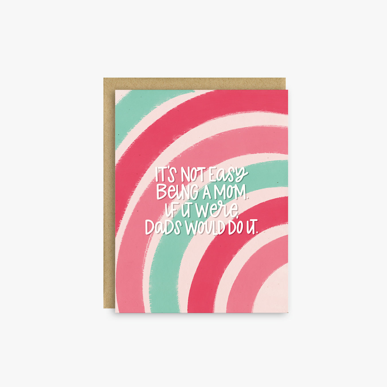 Celebrate the extraordinary journey of motherhood with our delightful blank Mother's Day card! Featuring a vibrant abstract design in hot pink, light pink, and mint, this A2-sized card is as eye-catching as it is heartfelt. The witty phrase, "It's not easy being a mom. If it were, dads would do it," adds a playful twist, perfectly capturing the essence of maternal multitasking.